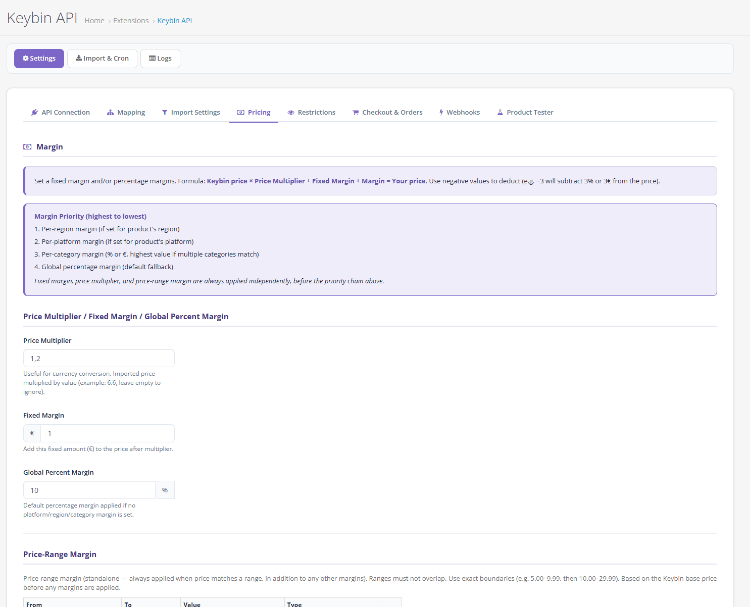 Set global margin, fixed margin, the margin by platform, and more!